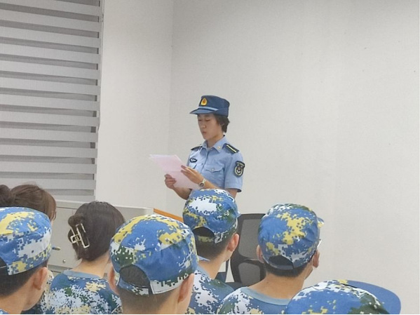 首先,余教官发言。她谈到:“军训是国防教育的一部分,是增强学生爱国主义思想和国防教育意识的一项重要措施。大学生是社会未来的中流砥柱和先进旗帜。并提出要求:互相尊重,配合教官的训练,遵守纪律,端正态度等”。最后余教官希望此次军训能给同学们留下美好回忆,每位同学都能圆满完成此次军训任务,并践行“厚德博学,经世济民”的校训。