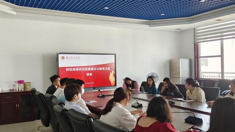 在国庆节到来前夕,财经高等研究院开展爱国主义教育主题班会,厚植新时代爱国主义情怀,培养青年学生成长为担当民族复兴大任的时代新人。财经高等研究院副院长潘娜,辅导员梅添淇以及全体团学干部参加。