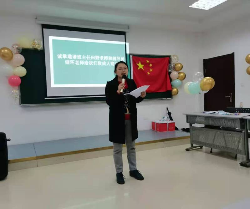 (通讯员 赖欣怡)11月19日下午,我院举办以“成人向歌而行,团青向党而奋”为主题的成人礼活动,辅导员储环老师和2020级全体新生参加。