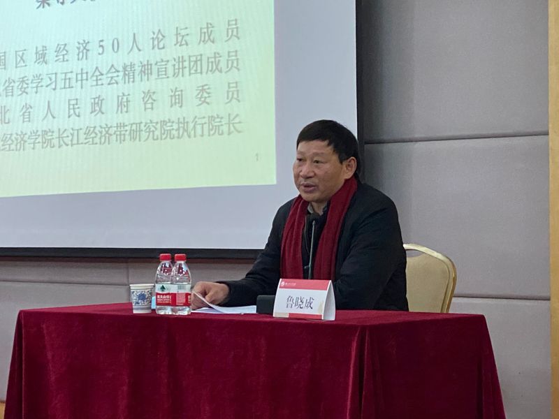 讲座上,秦尊文教授以11月14日习近平总书记在江苏省南京市主持召开全面推动长江经济带发展座谈会为背景,强调贯彻落实党的十九届五中全会精神,推动长江经济带高质量发展,提出“五要”,即要加强生态环境系统保护修复、要推进畅通国内大循环、要构筑高水平对外开放新高地、要加快产业基础高级化、产业链现代化、要保护传承弘扬长江文化。