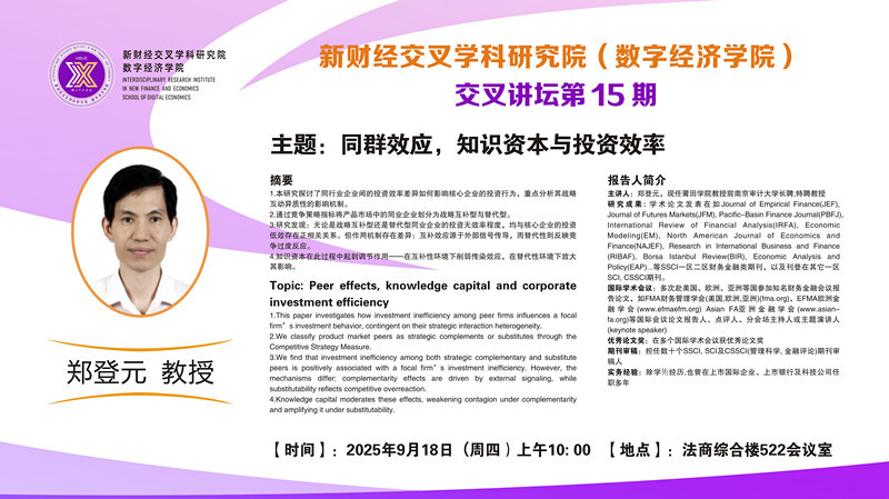 讲座主题:同群效应,知识资本与投资效率