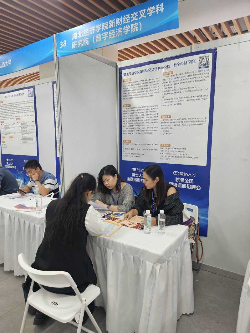 招聘会现场气氛热烈,吸引了来自西安交通大学及周边知名高校的众多优秀博士毕业生和博士后研究人员。我院展位前咨询踊跃,招聘团队与来自经济学、管理学等多个学科的博士人才进行了深入交流,详细介绍了我校的办学特色、学科发展、人才政策以及招聘需求,并就博士们关心的职业发展平台、科研支持、薪酬待遇、生活保障等问题进行了细致解答。
