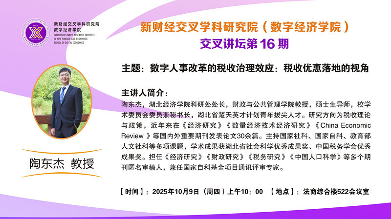 讲座主题:数字人事改革的税收治理效应:税收优惠落地的视角