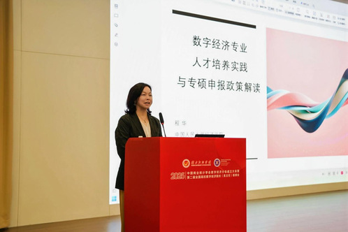 大会第三阶段,首先由中国人民大学王霞教授主持。中国人民大学程华教授就数字经济人才培养与专硕申报政策,做了专题报告。随后,武汉楚珈科技有限公司总经理胡意顺主持了湖北大数据集团古伟的特眼报告,古伟详细介绍了中部数据流通服务中心的发展情况,并就数据要素市场相关政策进行了解读。两场特邀报告针对学界和行业关键问题,为参会代表提供了专业且实用的视角与思路。