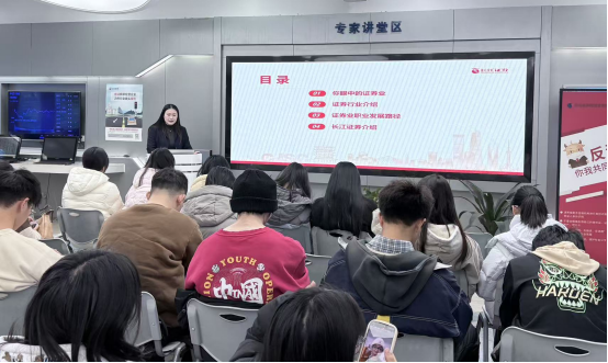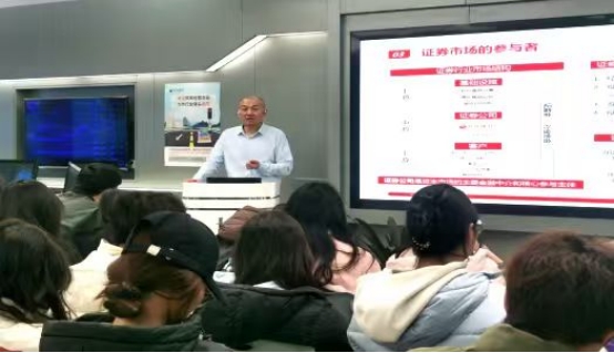 参观结束后,基地负责人张睿以《证券投资技术面分析概述》为题,从技术分析的核心逻辑、关键指标解读、实战应用场景等方面展开讲解,结合经典市场案例,帮助同学们理解如何通过数据观察市场趋势、辅助投资决策;投教专员王凯的《中国资本市场发展概述》讲座,系统梳理了我国资本市场从萌芽到成熟的发展脉络,剖析了当前市场格局与未来发展趋势,让同学们对行业宏观环境有了更深刻的把握;投教专员魏箫竹则围绕《证券行业职业发展规划》,结合自身从业经验,详细介绍了证券行业的岗位设置、能力要求与职业晋升路径,为同学们未来的职业选择提供了实用参考。