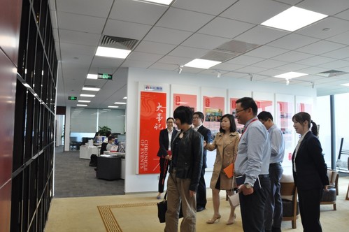 徐书记一行随后在总裁潘山的带领下参观走访了公司的企业文化长廊和研发团队办公区,并就各项业务流程和策略研发情况进行了进一步沟通与交流。