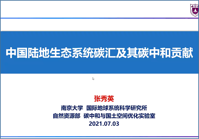 南京大学碳中和与国土空间优化实验室张秀英教授,作“中国陆地生态系统碳汇及其碳中和贡献”的专题报告。报告系统介绍了该研究团队在碳盘查、碳中和预测、区域协同碳减排等方面取得的最新研究成果,研究表明陆地生态系统碳汇的估算仍然存下较强的不确定性,精准核算仍然面临较多困难;未来气候情景下,陆地生态系统在IPCC 2.6和6.0情景下最高中和65%、82%的人为碳排放,表明碳中和得以实现的可行性;由于地区发展的不均衡,贸易中隐藏的碳排放需要在制定减排任务中被充分考虑。