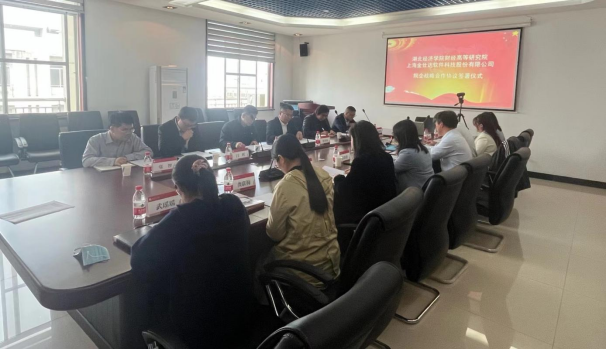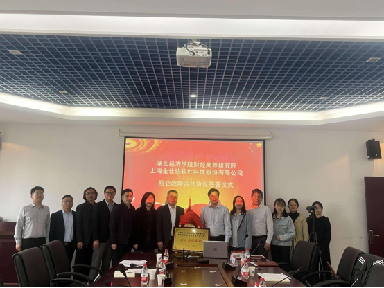 4月27日下午,财经高等研究院与上海金仕达软件科技股份有限公司院企战略合作协议签署仪式在财经高等研究院522会议室成功举办,上海金仕达软件科技股份有限公司总裁张治国、上海金仕达软件科技股份有限公司副总裁吴江、上海金仕达软件科技股份有限公司总经理办公室主任王云海、上海金仕达软件科技股份有限公司金融终端产品部总监闫晖、上海金仕达软件科技股份有限公司武汉分公司运营总经理李爱华、上海金仕达软件科技股份有限公司招聘经理张智、湖北经济学院校党委常委许传华、湖北经济学院学工处副处长郭倩倩、湖北经济学院研究生处副处长王立俊、财经高等研究院副院长潘娜、财经高等研究院院长助理高雅婷、财经高等研究院院长助理姜璟璐、财经高等研究院系主任龚联梅、财经高等研究院系主任武瑶瑶、财经高等研究院办公室主任李翘楚、财经高等研究院教学秘书严梦出席会议,会议由财经高等研究院副院长潘娜主持。
