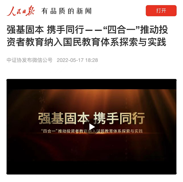 由中国证券业协会录制题为:强基固本《携手同行——“四合一”推动投资者教育统入国民教育体系探索与实践》纪实宣传片在人民日报及中国证券业协会等客户端发布。财经高等研究院副院长潘娜受邀参与该纪实宣传片录制,潘娜就我院参与投资者教育实践、投资者教育进课堂及校企合作等工作进行了介绍,并对投资者教育纳入国民教育体系中出现的新问题新情况发表观点。